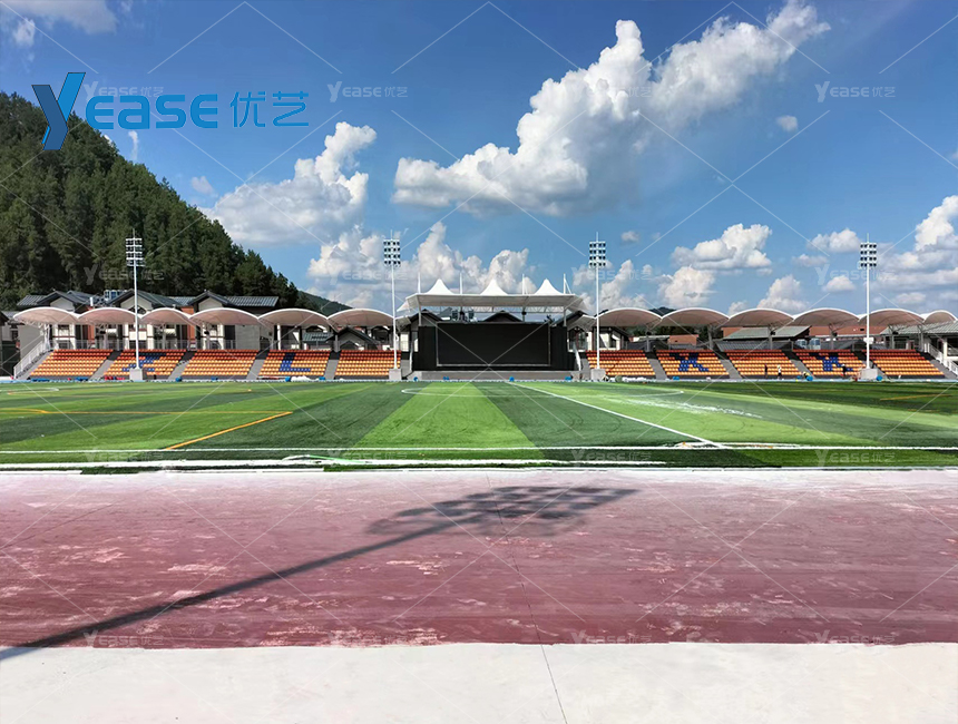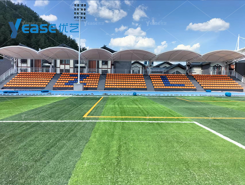 堅固耐用的鋼結構看臺系統(tǒng),滿足戶外場館長期使用與高承載要求。